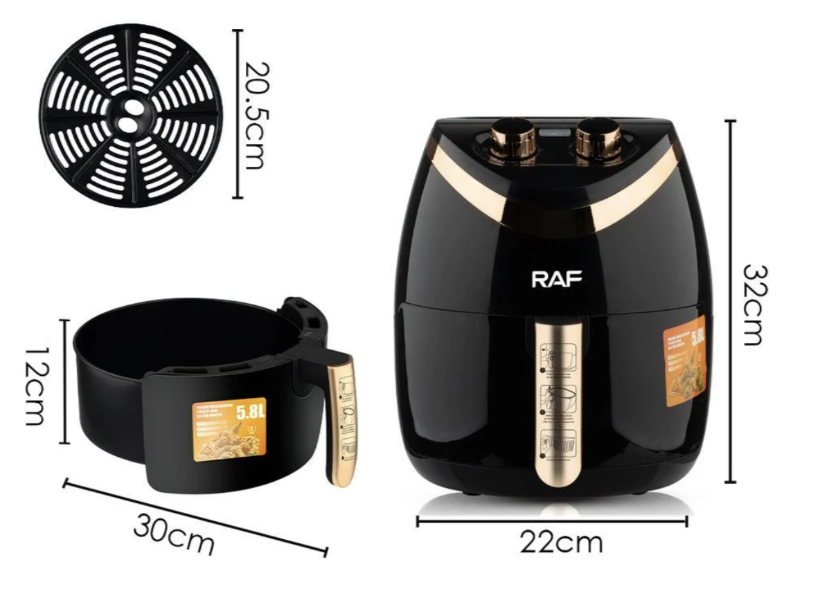 Аерофритюрниця RAF R.5232B 5,8 л — фритюрниця без олії для смачної та корисної їжі