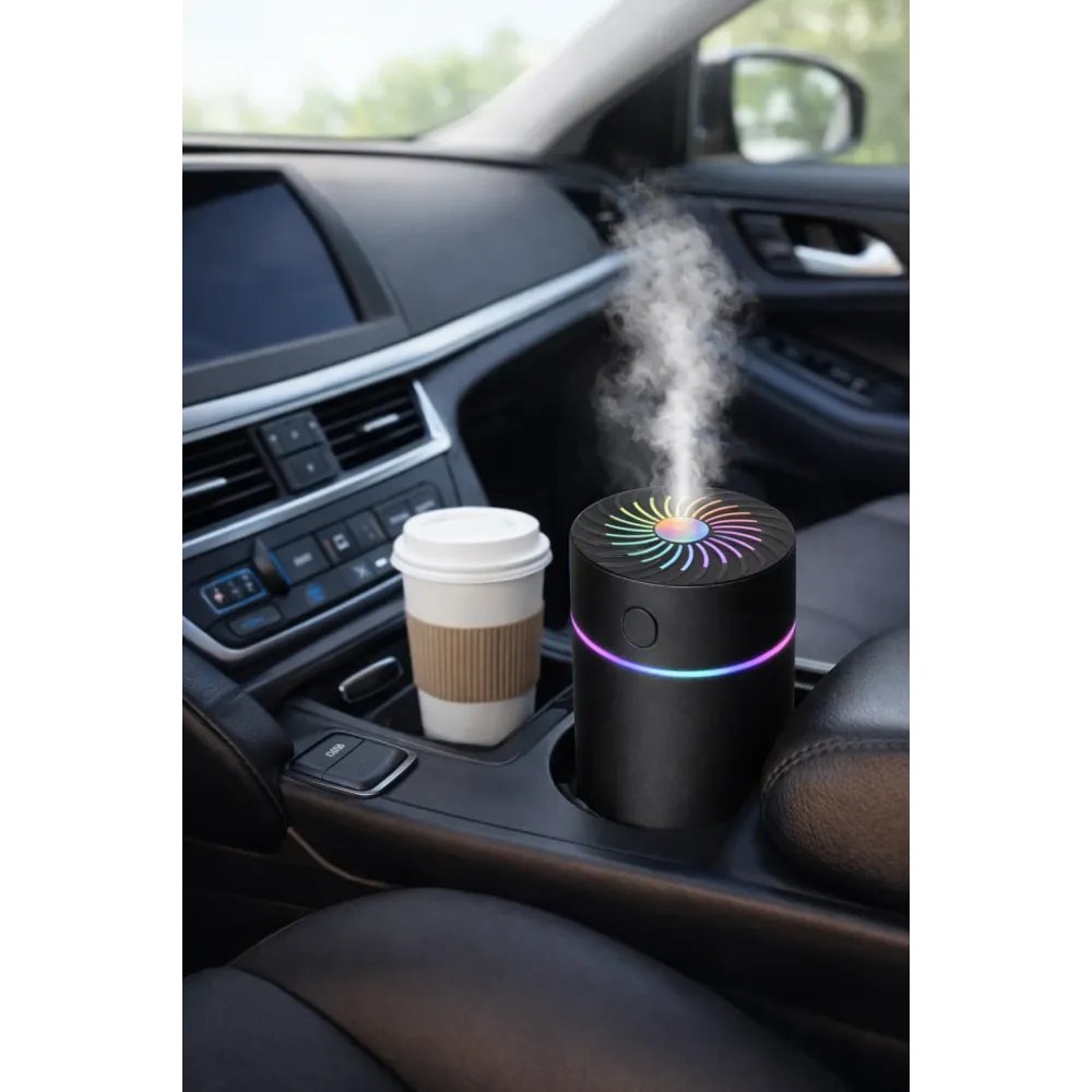 Автомобільний зволожувач повітря аромадифузор чорний — компактний міні зволожувач для салону авто, що працює від прикурювача. Допомагає підтримувати комфортніший мікроклімат у дорозі та може використовуватися як ароматизатор (за потреби). Практичний автоаксесуар для щоденного використання: простий у підключенні, зручний у поїздках і розрахований на регулярну експлуатацію.