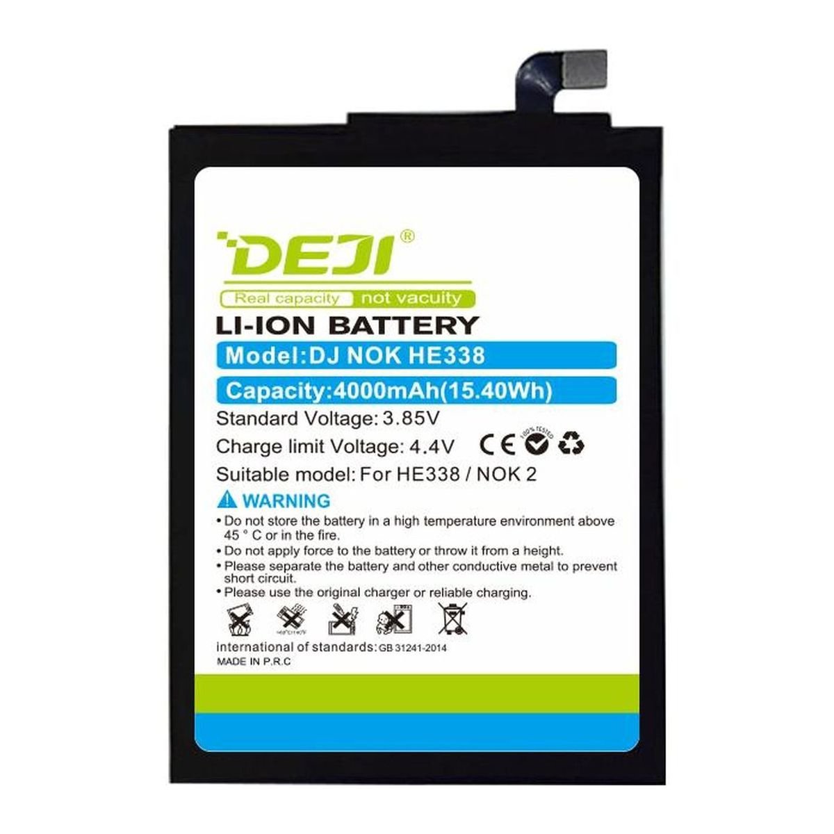 Батарея DEJI HE338 для Nokia 2 / Nokia 2.1 — надійне енергопостачання для вашого смартфона з ємністю 4000 mAh та технологією Li-Ion.
