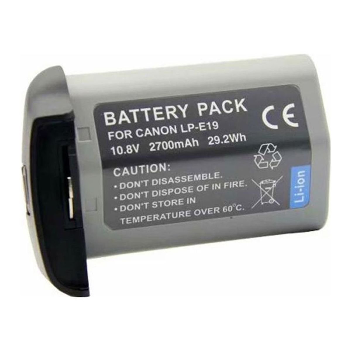 Батарея LP-E19, ємністю 2700 mAh, 100% сумісна з оригінальним акумулятором CANON LP-E19, а також LP-E4 та LP-E4N. Батарея містить «інфо-чіп», який дозволяє відображати час заряду, що залишився, або кількість кадрів на дисплеї камери, і заряджати акумулятор як від оригінального зарядного пристрою , так від будь-якого сумісного.
