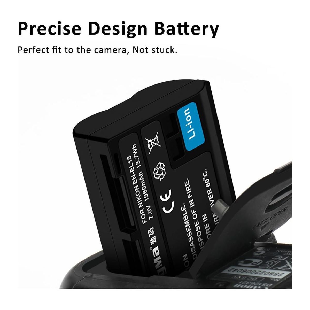 - Сумісність: Nikon EN-EL15, 1 V1, D600, D610, D7000, D7100, D750, D800, D8000, D800E, D810, D810A, D7200, D850, D500, Z6