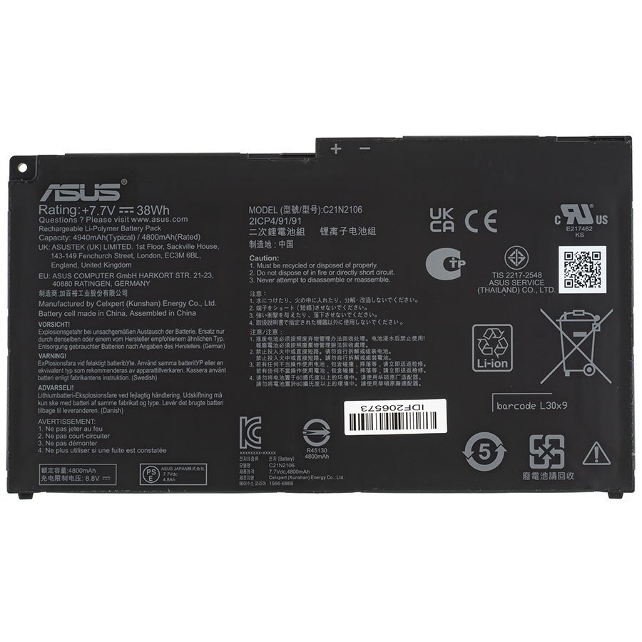 Акумулятор C21N2106 (7.7V, 4930mAh, 38Wh) — це оригінальний елемент живлення, розроблений для забезпечення стабільної та тривалої роботи вашого ноутбука ASUS ExpertBook B3 Detachable B3000DQ1A. Виготовлений з використанням високоякісних літій-іонних елементів, цей акумулятор гарантує ефективність та надійність у повсякденному використанні.