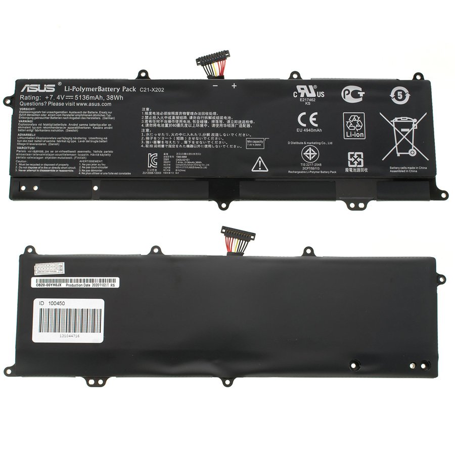 - Батарея (оригінал) для ASUS S200E, X202E, X201E, Q200E series C21-X202 7.4V 5136mAh 38Wh-