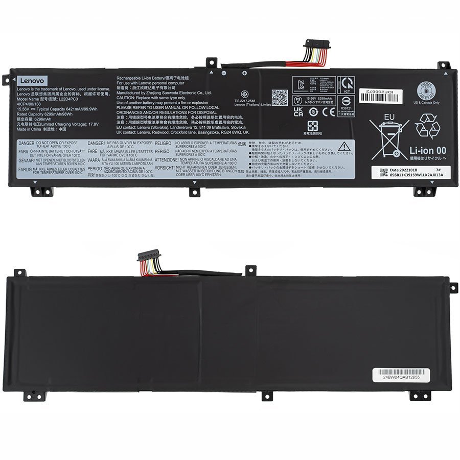 Акумулятор L22D4PC3 (15.56V, 6421mAh, 99Wh) є оригінальним джерелом живлення, розробленим для забезпечення тривалої та надійної роботи ноутбуків Lenovo Legion S7 16IRH8 та Legion S7 16APH8.