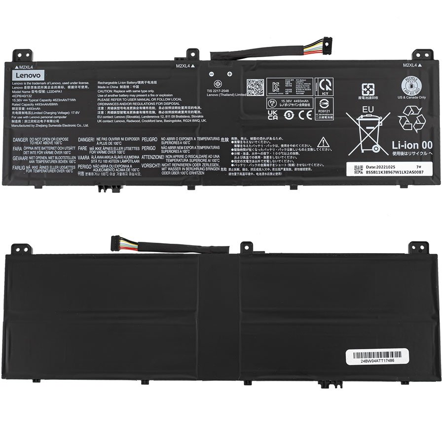 - Батарея (оригінал) для Lenovo Yoga 7: 14ARP8 14IRL8 16IRL8 L22D4PA1 15.36V 4623mAh 71Wh-
