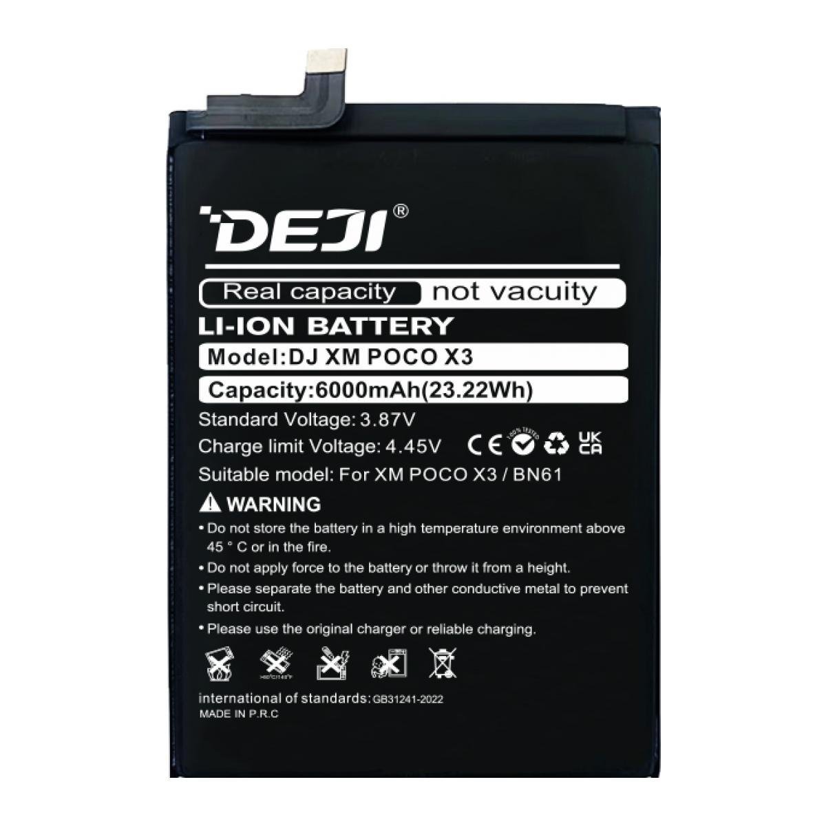Оберіть DEJI для подовженого часу автономної роботи вашого POCO X3 — оптимальне поєднання ємності, безпеки та вартості.