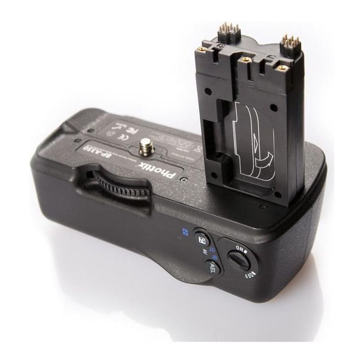 Акумулятор для фотоапаратів Sony A200 A300 A350. Підвищує швидкість зйомки та збільшує час автономної роботи. Ергономічна конструкція рукоятки батарейного блоку дозволяє зручніше тримати фотокамеру під час зйомки у вертикальному положенні. Як джерело живлення блоку використовуються шість одна або дві спеціальні акумуляторні батареї NP-FM500H. Для зручності зйомки вертикальних кадрів, на рукоятці розташовані додаткова кнопка спуску затвора, кнопка включення автофокуса, а також кнопка блокування автоекспозаміру (AE Lock), кнопка AV Control . Є вбудований роз'єм для кріплення штативу.