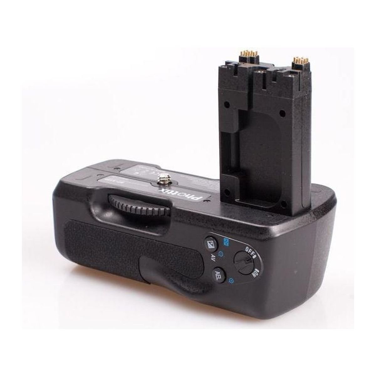 Вертикальна батарейна ручка для цифрових фотоапаратів Sony A500/A550 (з аналогічними функціями батарейного блоку VG-B50AM). Підвищує швидкість зйомки та збільшує час автономної роботи. Ергономічна конструкція рукоятки батарейного блоку дозволяє зручніше тримати фотокамеру під час зйомки у вертикальному положенні. Як джерело живлення блоку використовуються дві спеціальні акумуляторні батареї NP-FM500H. Для зручності зйомки вертикальних кадрів, на ручці розташовані додаткова вертикальна кнопка спуску затвора, кнопка АЕ lock, АV Control, кнопка включення автофокуса.