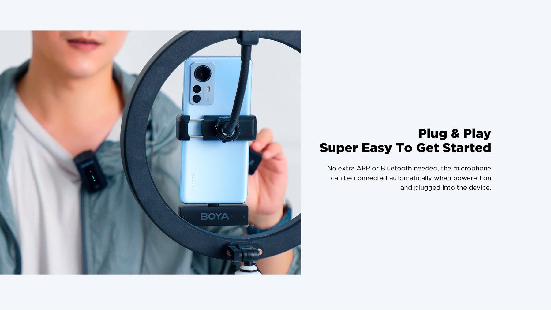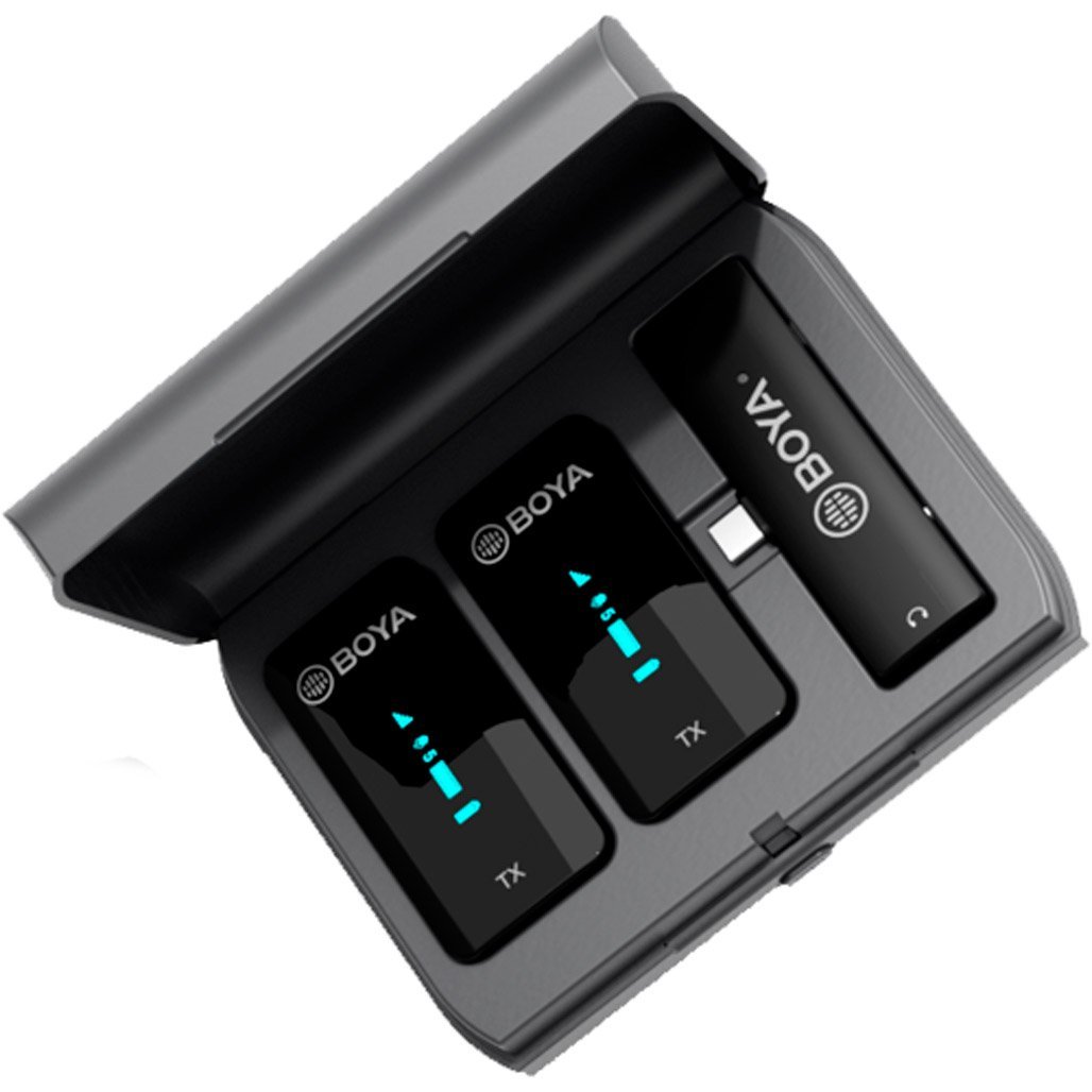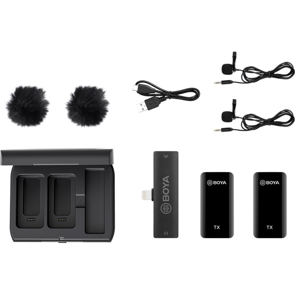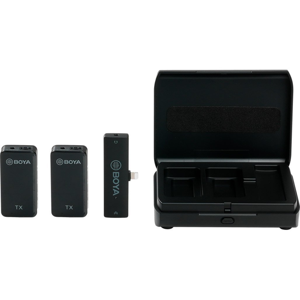 BOYA BY-XM6-K4 - це двоканальна бездротова мікрофонна система 2,4 ГГц, що складається з двох передавачів та одного приймача. Вона забезпечує високоякісний звук для пристроїв Apple iOS із портами Lightning. Ідеально підходить для влогінгу, створення контенту, прямої трансляції, інтерв'ю, запису і т.д.