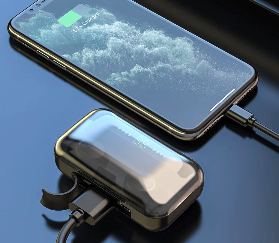 Бездротові TWS навушники BTH-F9-5 з сенсорним керуванням і кейсом-зарядкою з цифровим дисплеєм (Bluetooth)