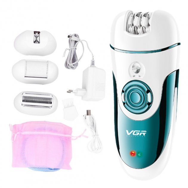 Бездротовий епілятор VGR V-700 з підсвіткою, 4 змінні насадки, USB-зарядка