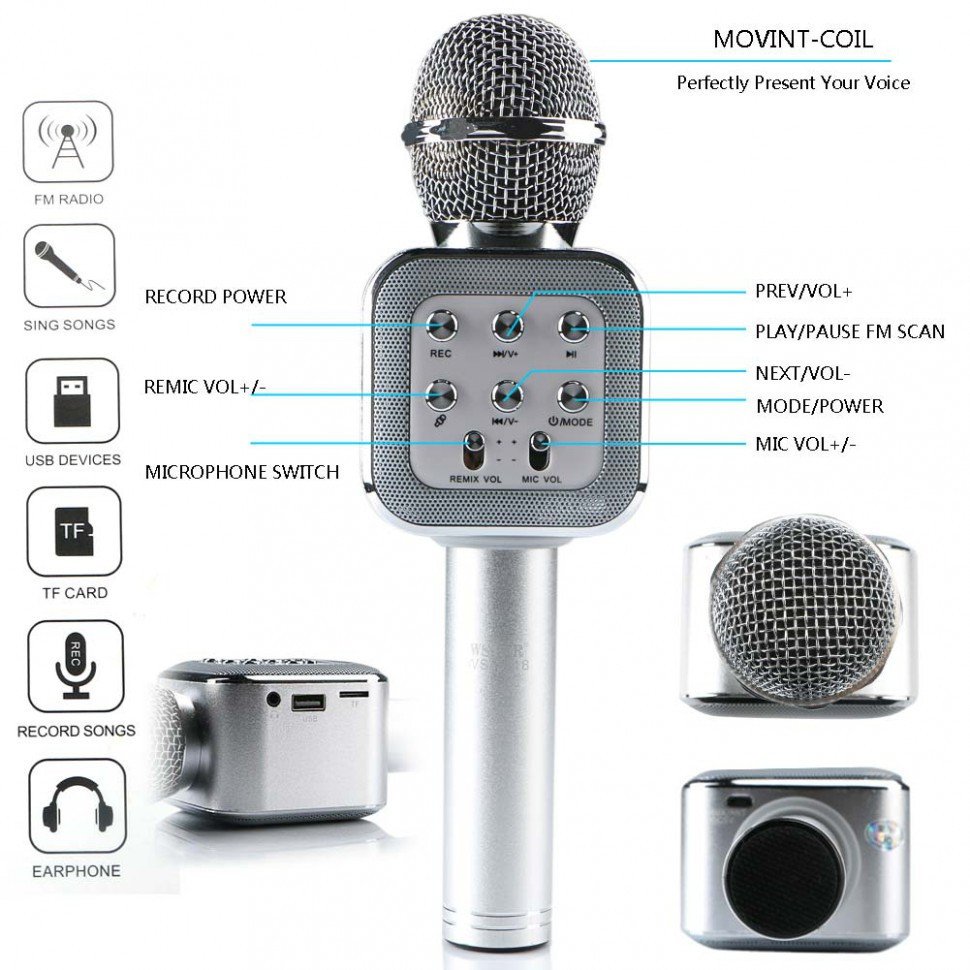 Бездротовий караоке мікрофон WS-1818 із функцією зміни голосу — практичний аксесуар для домашнього караоке та розваг. Модель оснащена функцією зміни голосу та працює без дротів, що робить використання зручним у будь-якому місці. Підійде для щоденного використання: якісне виконання та надійна конструкція для регулярних співів і веселих посиденьок.