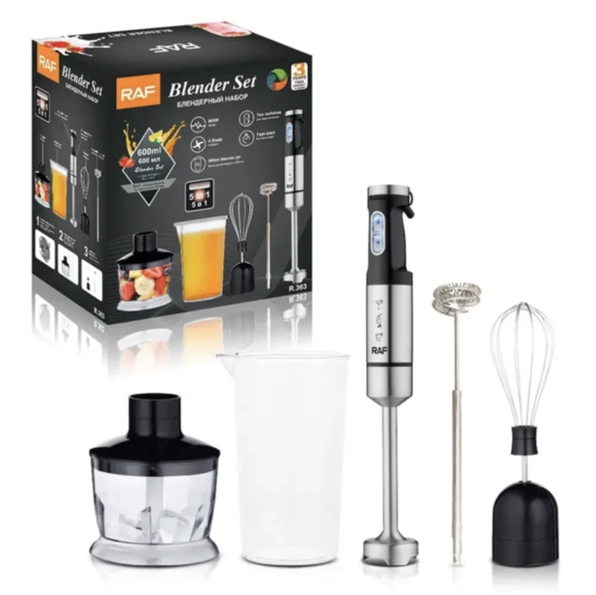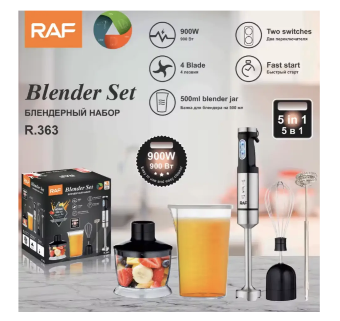 Блендер RAF R.363 5-в-1 з нержавіючої сталі для дому, універсальний, 900W