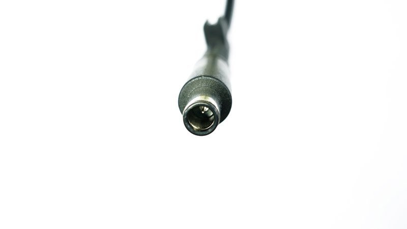 - Підключається до ноутбука через роз'єм 7.4x5.0-PIN; з'єднання забезпечує живлення і заряд батареї.
