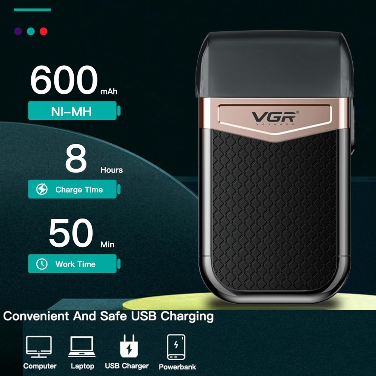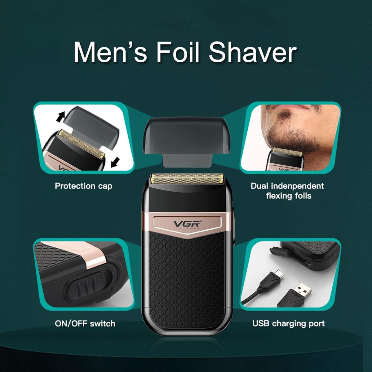 Бритва-шейвер VGR V-331 для сухого й вологого гоління, портативна дорожня для дому
