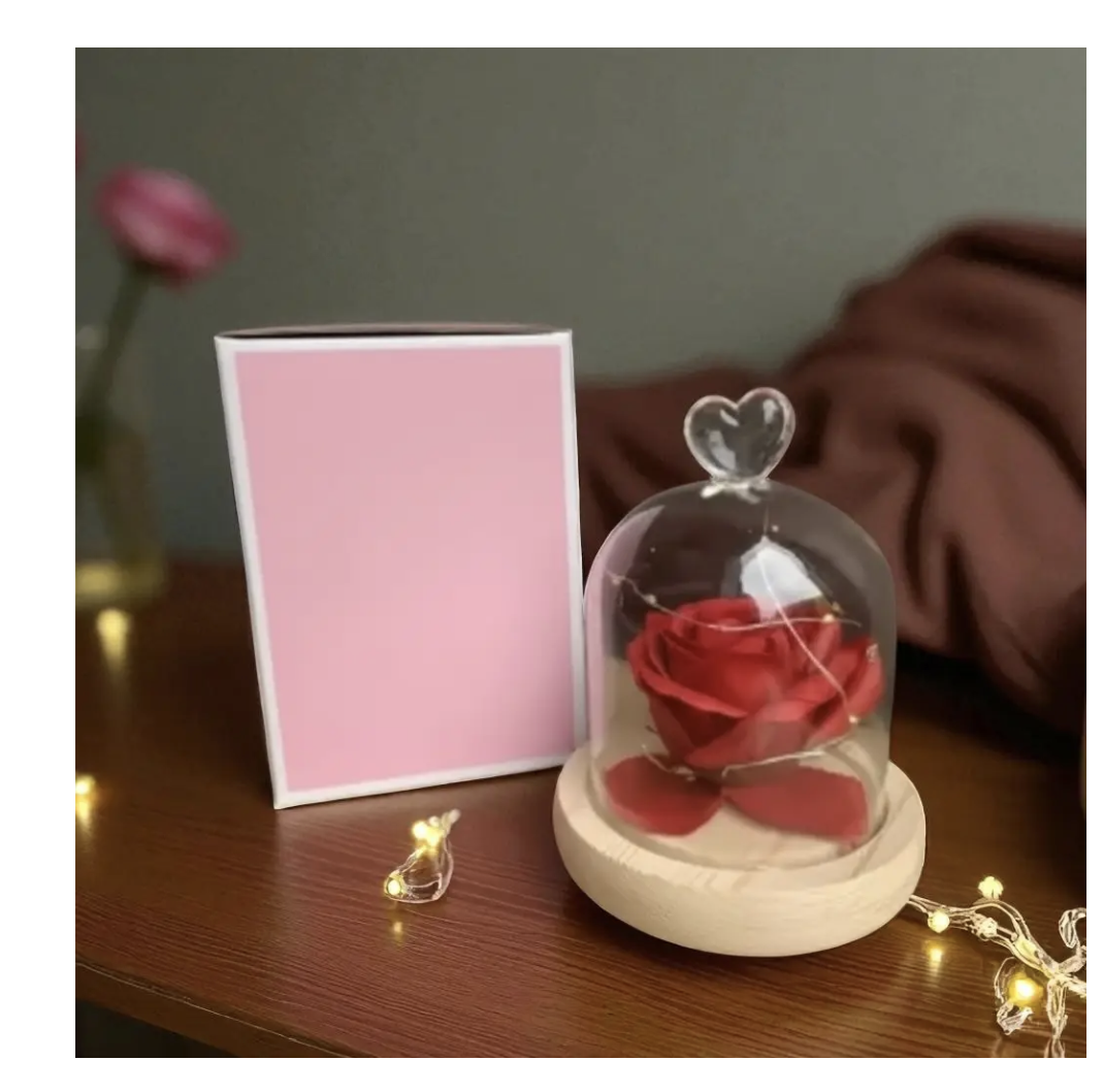Бутон троянди в колбі — романтичний подарунок і стильний елемент декору. Троянда під куполом виглядає елегантно та доречно в інтер’єрі спальні, вітальні чи робочого простору. Виріб виконаний якісно та надійно, підходить для щоденного використання як декоративна прикраса.