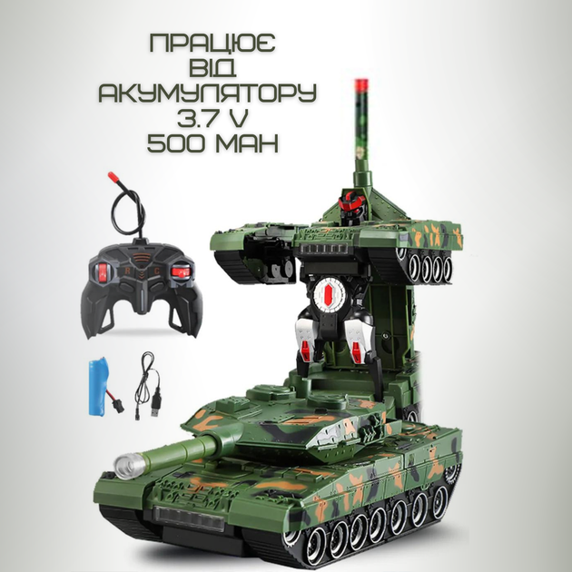 Дитяча радіокерована іграшка Armored Car: танк‑трансформер/робот 360°, світло, звук, акумулятор