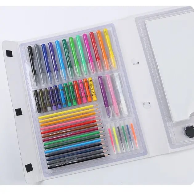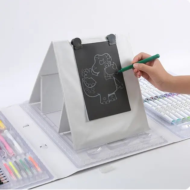 Дитячий набір для малювання 007 (98 предметів) — зручний набір для творчості з мольбертом у кейсі. Підійде для щоденного використання вдома, у школі чи в дорозі: усі матеріали зібрані в одному місці, а кейс допомагає підтримувати порядок. Набір виконаний якісно та розрахований на регулярне використання.