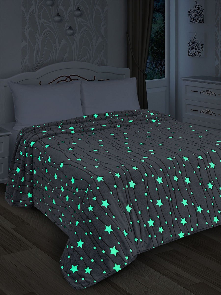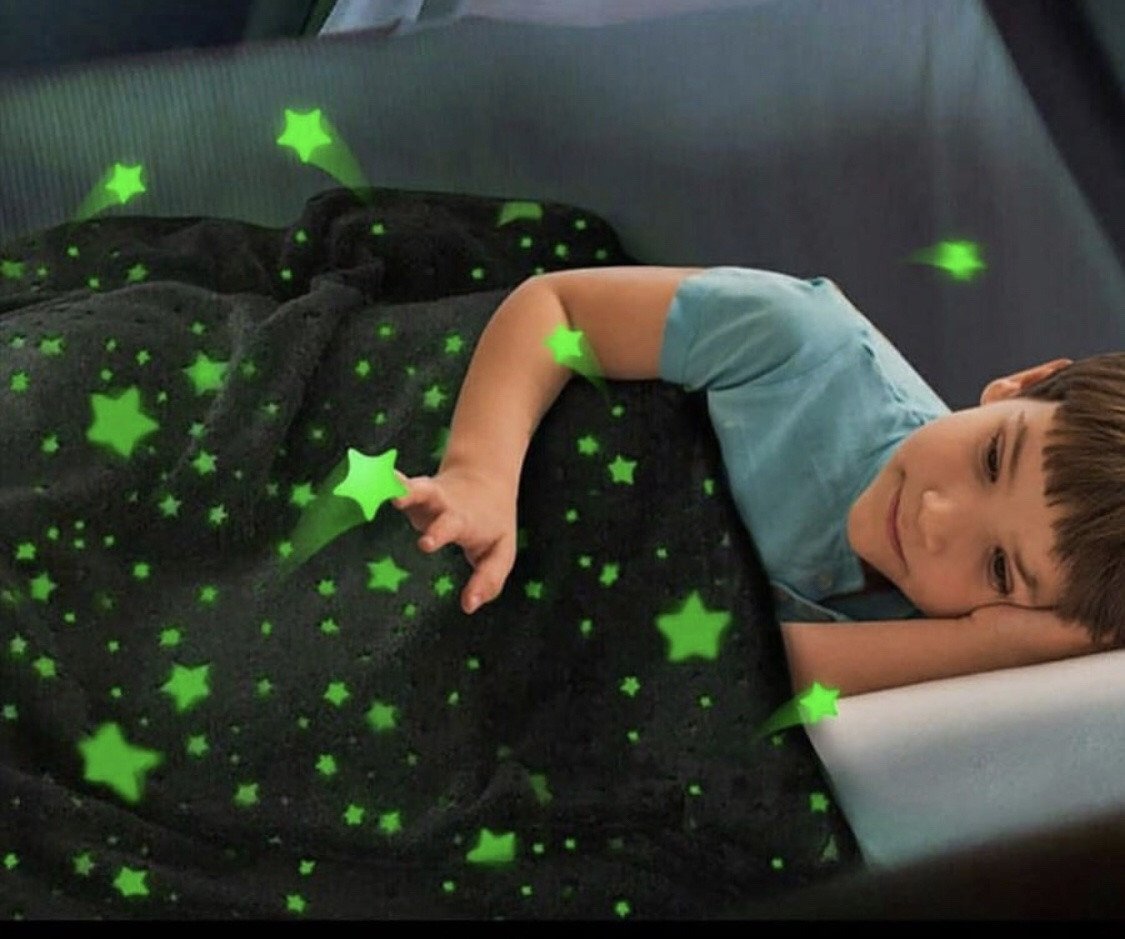 ```Дитячий плед, що світиться у темряві — люменісцентний неоновий плед-покривало «день-ніч» із тематичним візерунком. М’який та приємний на дотик, підходить для щоденного використання вдома: для сну, відпочинку, читання або як затишне покривало на ліжко.