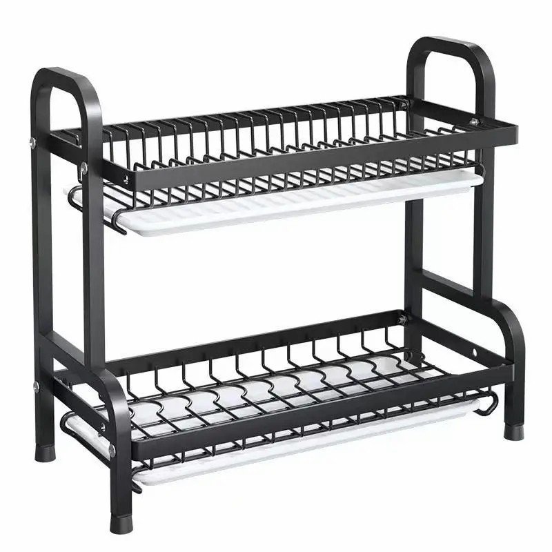 Двоярусна настільна металева сушарка для посуду LY-620 зі стійкою для зберігання