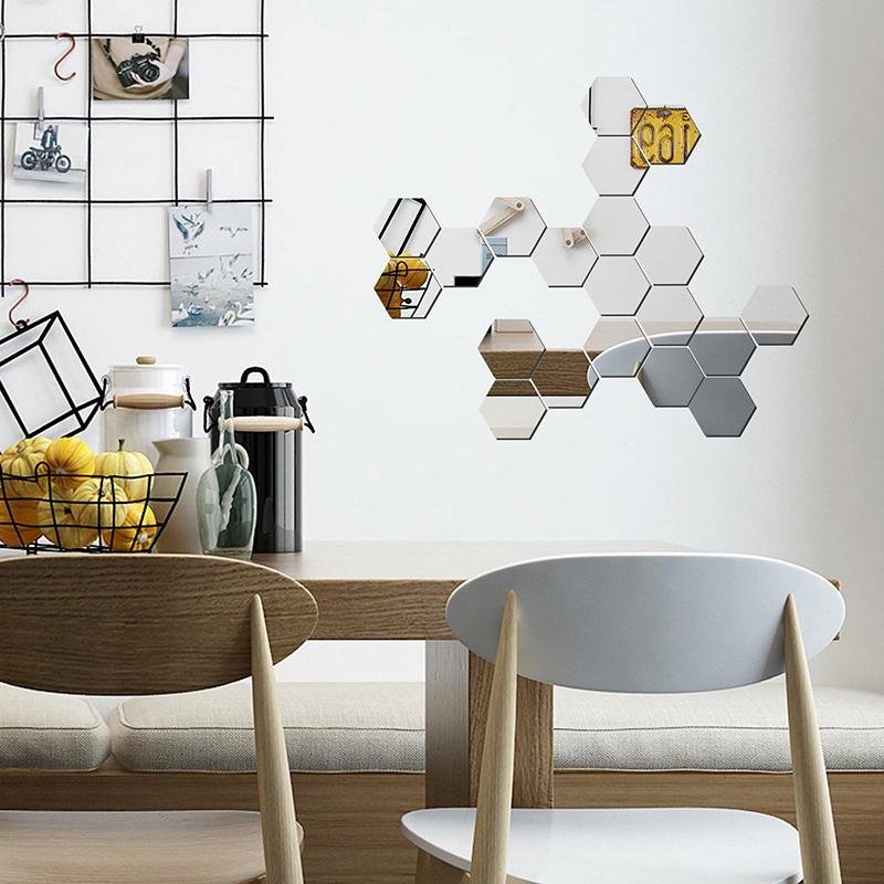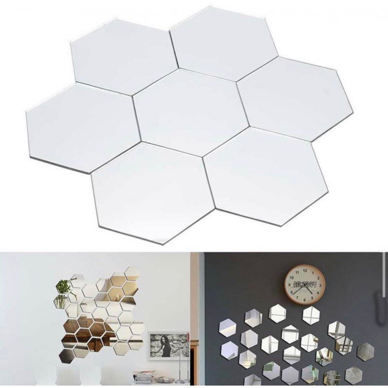 Дзеркальні акрилові наклейки «Соти» 12,5 см — настінний декор для інтер’єру, набір 12 шт.