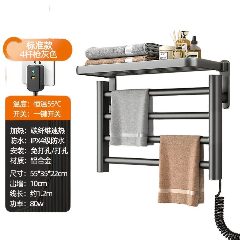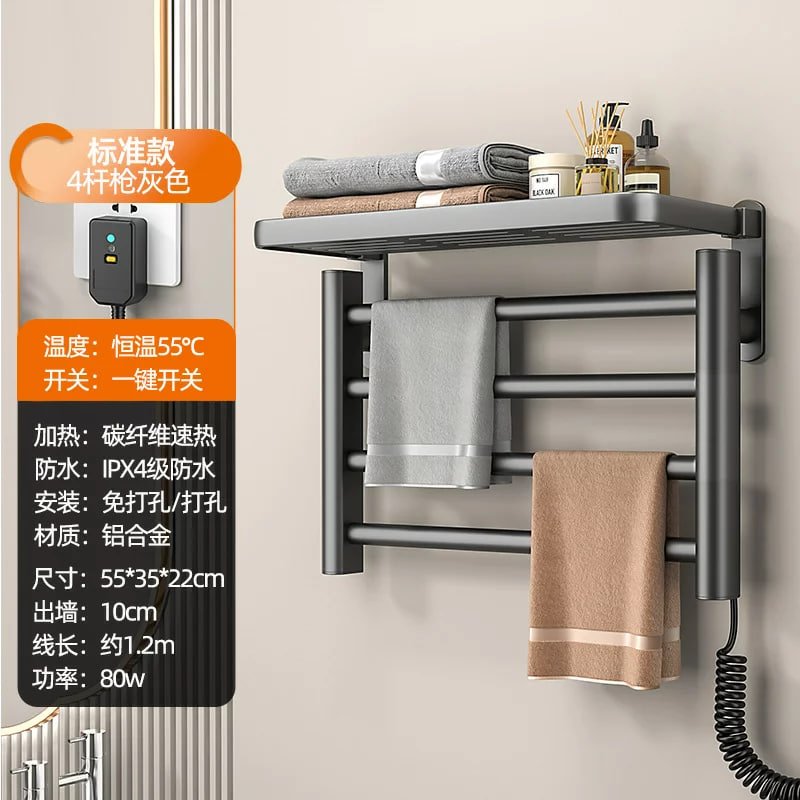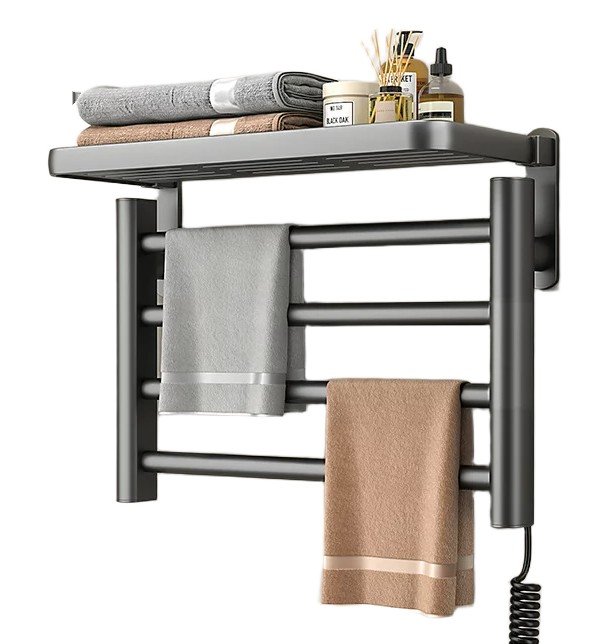 Рушникосушка з полицею настінна GN-9402-G — електрична рушникосушка для ванної кімнати, що поєднує зручне сушіння рушників і додаткове місце для зберігання завдяки полиці. Практичний настінний формат допомагає економити простір і підтримувати охайність у ванній.