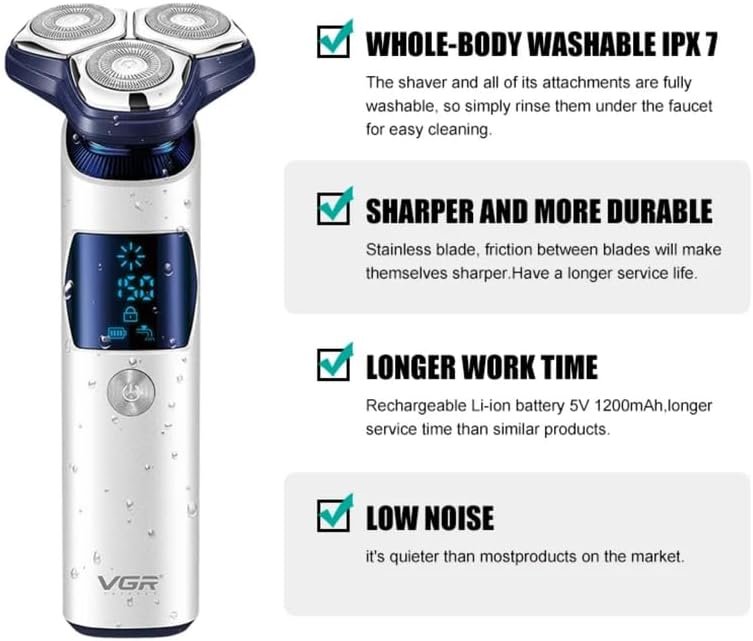 Електробритва VGR V-328 для чоловіків — роторний шейвер з LED-дисплеєм
