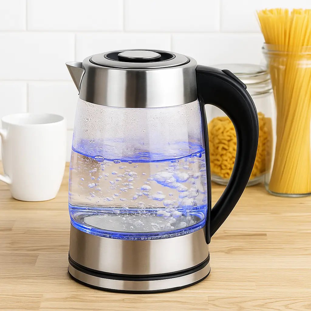 Електрочайник Hoffmans HM-2556 — скляний електрочайник з підсвіткою та шкалою рівня води, який забезпечує швидке кип’ятіння завдяки потужності 2000 W. Якісний і надійний варіант для щоденного використання вдома чи в офісі.