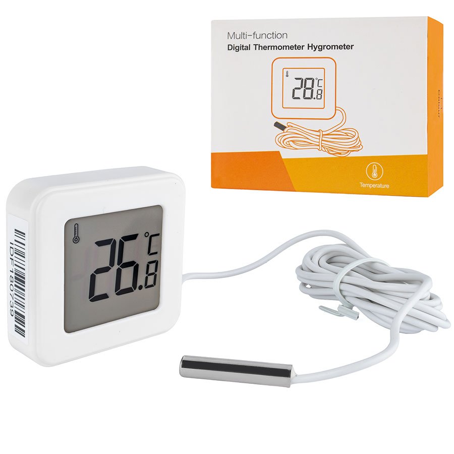 Електронний термометр з виносним датчиком CX1207A — практичний прилад для щоденного контролю температури у потрібному місці завдяки виносному датчику. Підійде для побутового використання, коли важливо вимірювати температуру не лише біля корпусу приладу, а й на відстані.