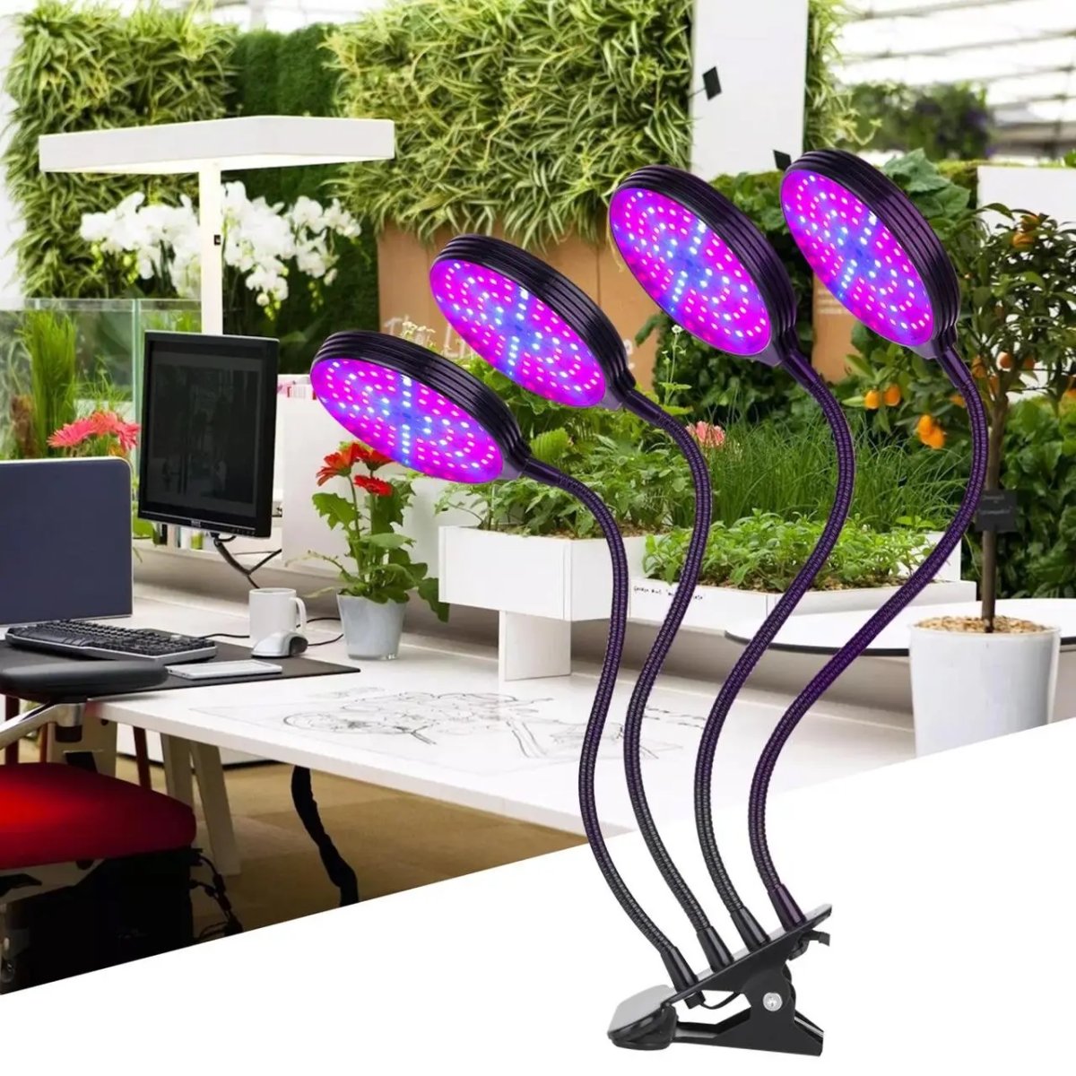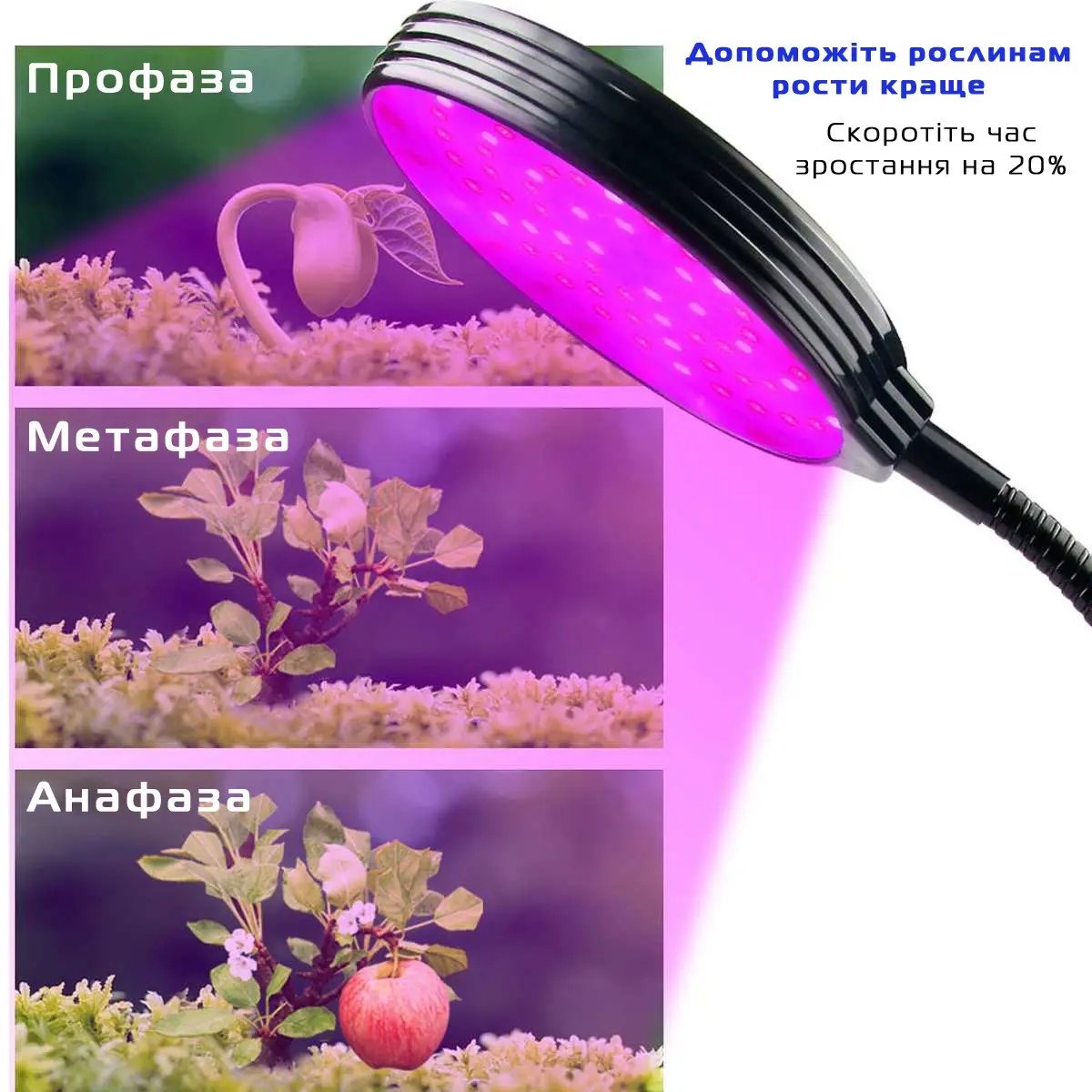 Фітолампа LED для рослин: кругла, 4 головки, таймер і регулювання яскравості
