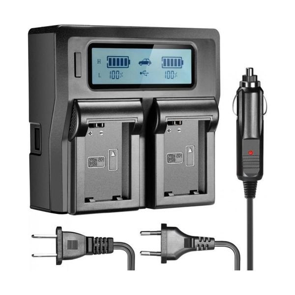 Інтелектуальний зарядний пристрій Smart Charger DC-LCD призначений для одночасного заряджання двох акумуляторів Sony NP-FW50. Сумісно із камерами Sony NEX-F3, NEX-C5, NEX-C3, NEX-7, NEX-5T, NEX-5R, NEX-5N, ILCE-QX1, Cybershot DSC-RX10 III, Cybershot DSC-RX10 II, Cybershot DSC-RX10, Alpha SLT-A55