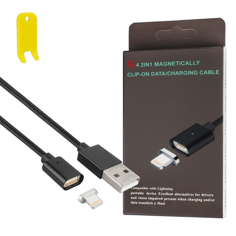 Кабель Clip-On Метал Lightning для iPhone чорний магнитный