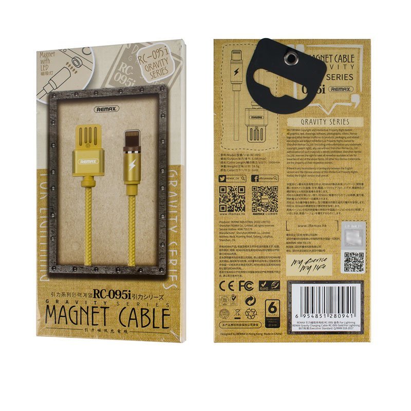 Кабель REMAX Gravity Lightning для iPhone, золотой (магнитный) — якісний магнітний кабель для швидкої і безпечної зарядки та передачі даних пристроїв Apple з роз’ємом Lightning.