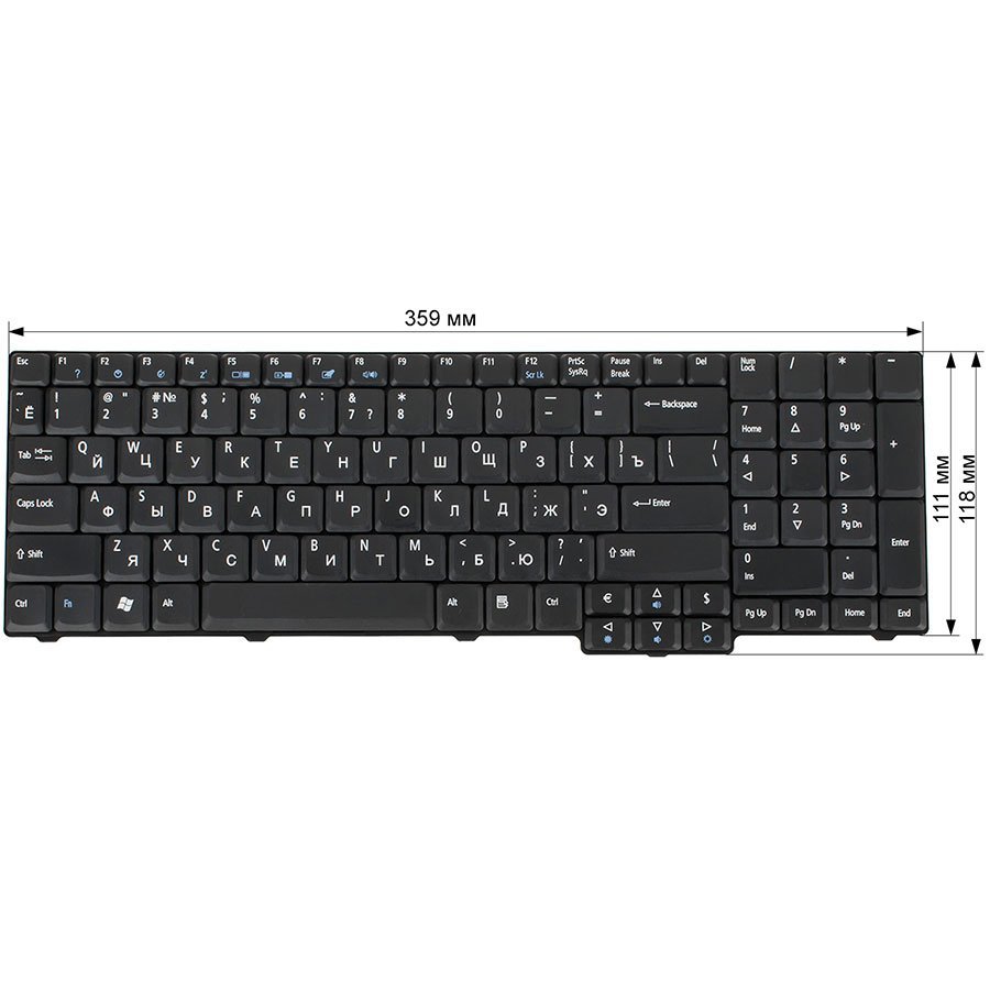 - Клавіатура ACER Aspire 6530, 6930, 7000, 9300 / TravelMate 5100, 7320 / Extensa 5235, 7220 / eMachines E528 — чорна, російська розкладка-