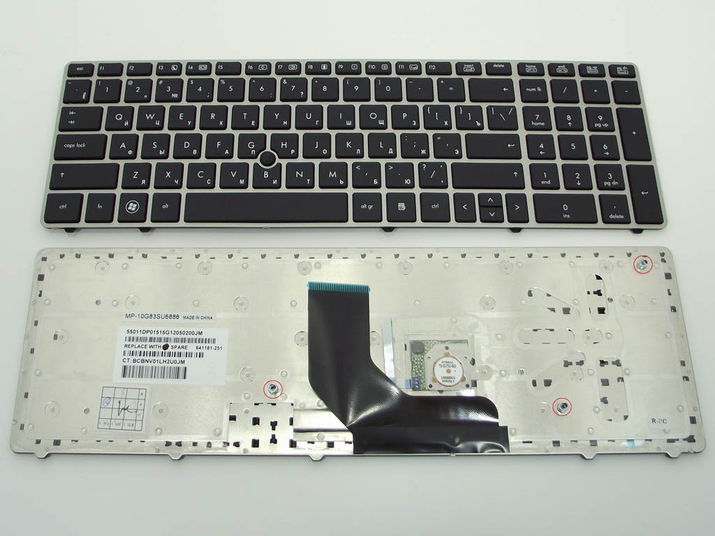 Клавіатура для HP ProBook 6560B/6565B/6560P та EliteBook 8560P/8570P/8560B — RU, чорна, із срібною рамкою та PointStick, Original