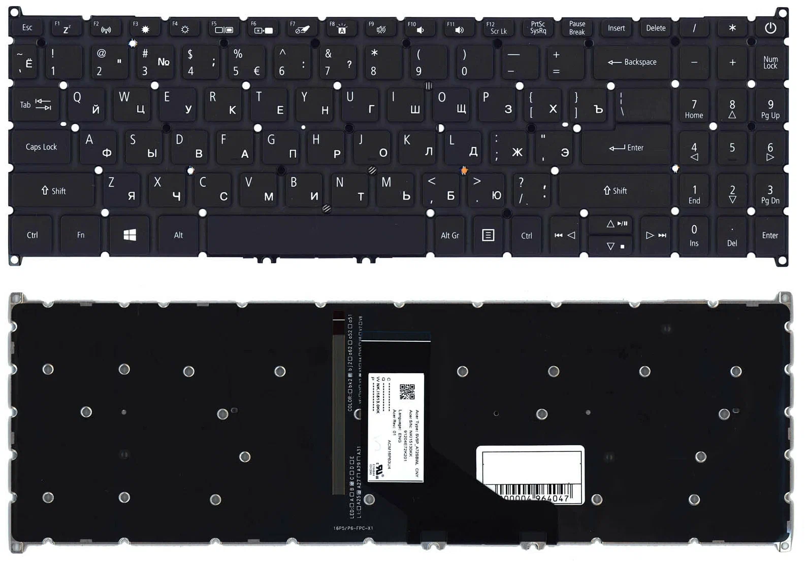 Клавіатура для ноутбука **Acer Aspire A514-52** у чорному кольорі з **підсвіткою (Light)** та **RU-розкладкою**. Якісна та надійна заміна для комфортного щоденного використання, забезпечує зручний набір тексту та стабільну роботу.