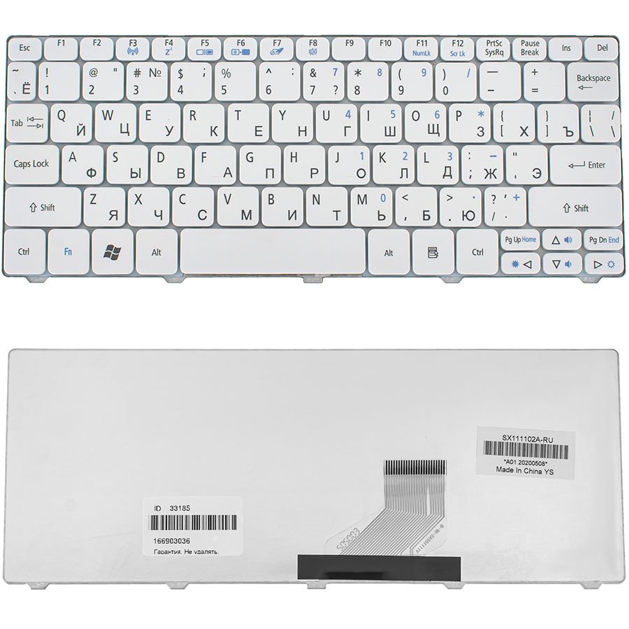 Клавіатура для ноутбука ACER сумісна з моделями One: 521, 522, 532, 533, D255, D257, D260, D270, Happy, а також EM: 350, 355. Має російську розкладку (RUS) та білий колір. Якісна й надійна клавіатура для щоденного використання, зручна для набору тексту та заміни штатної клавіатури.