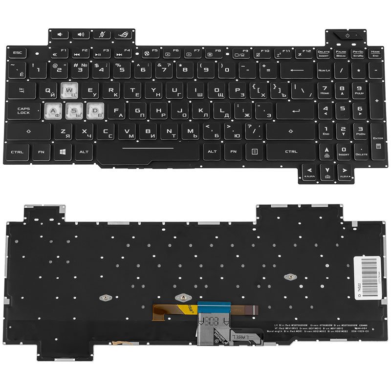 Оригінальна клавіатура для ноутбука ASUS серії GL704. Виконана у чорному кольорі, російська розкладка (RUS), без фрейма. Оснащена RGB-підсвіткою клавіш для комфортного набору в темряві. Якісний і надійний варіант для щоденного використання та заміни штатної клавіатури.