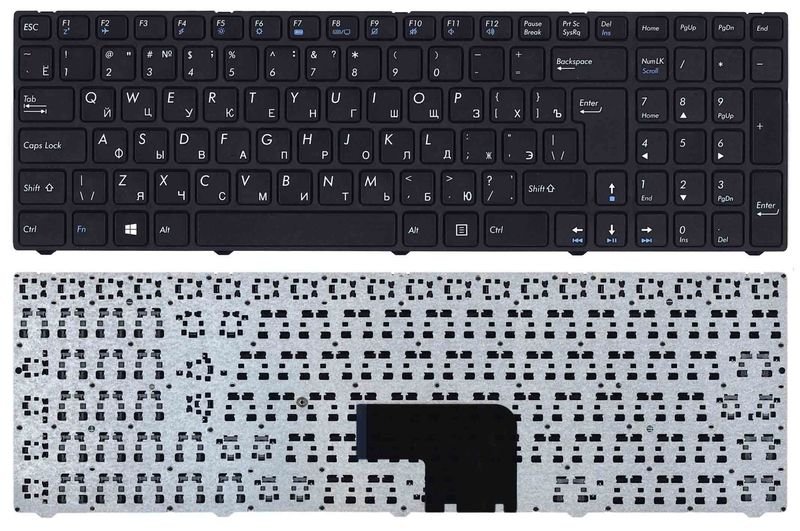 Клавіатура для ноутбука DNS Pegatron C15, C17 — чорна, з рамкою, RU-розкладка