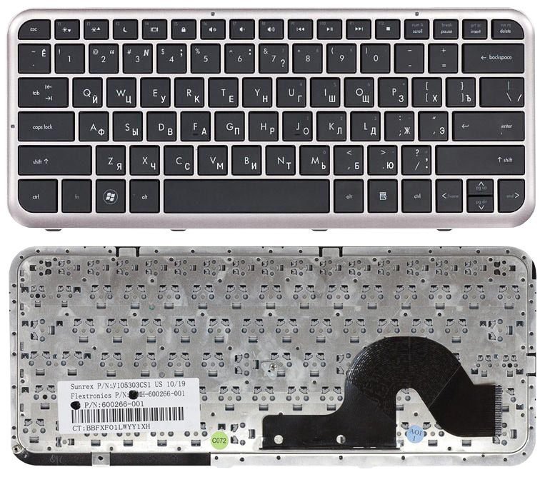 Клавіатура-аналог для HP Pavilion dm3‑1000 / dm3t‑1000 / dm3z‑1000 серій із контрастною сріблястою рамкою навколо чорного корпусу. Підтримує двомовну QWERTY‑розкладку RU + EN, без підсвітки. Часто представлена як модуль з кодом **605630‑071** або **V105303CK1** (найчастіше US layout, але можуть бути RU вилки). Також доступні generic RU-layout моделі з металевою рамкою без уточненого парт‑номера. Ідеальна заміна для оригінальної клавіатури .