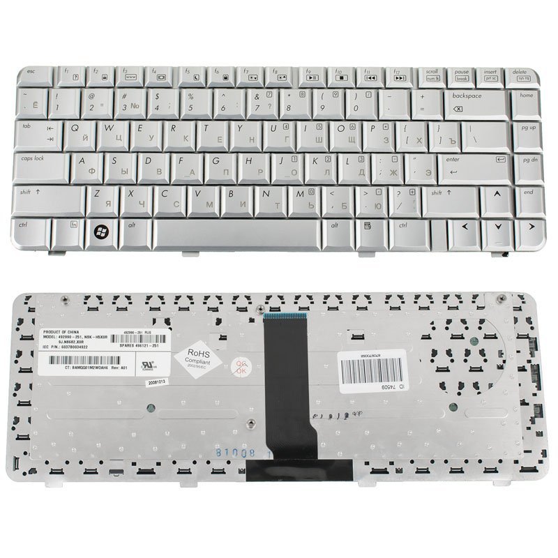 Срібляста клавіатура з російською розкладкою, сумісна з ноутбуками HP Pavilion dv3000, dv3500, dv3600 та dv3700 серій. Надійна заміна для відновлення повноцінної роботи ноутбука.