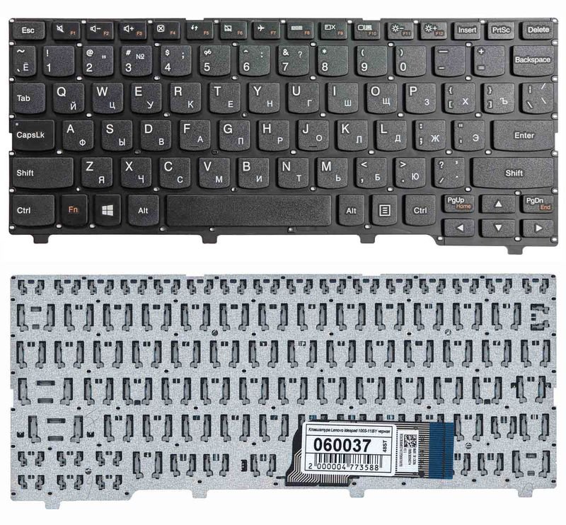 - Клавіатура для ноутбука Lenovo IdeaPad (100S-11IBY) Black (No Frame), RU-