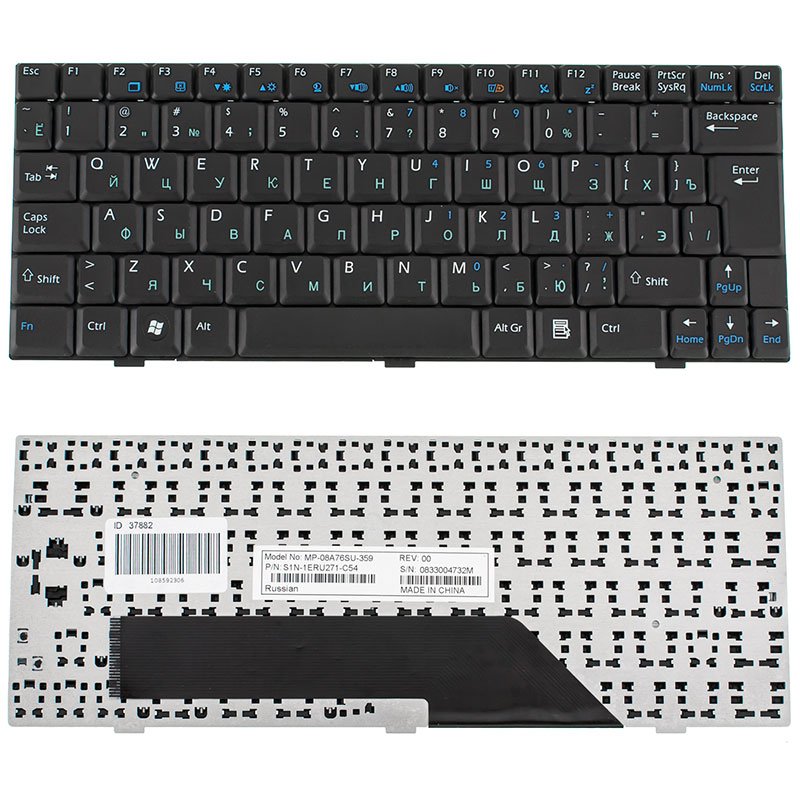 Клавіатура для ноутбука MSI U135, U160 — розкладка RU, чорна
