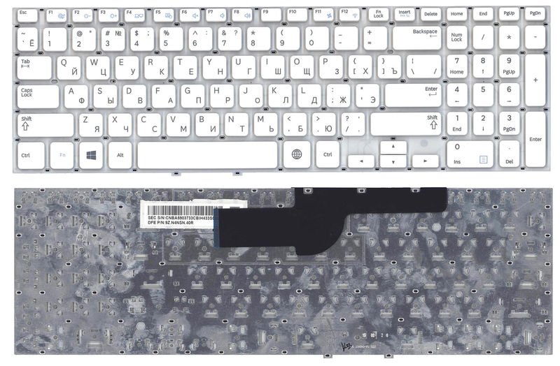 Клавіатура для ноутбука Samsung, сумісна з моделями 355V5C, 350V5C, NP355V5C, NP355V5C-A01. Виконана у білому кольорі, розкладка RU, постачається без рамки (No Frame). Якісна та надійна заміна для щоденного використання, забезпечує комфортний набір тексту та стабільну роботу.