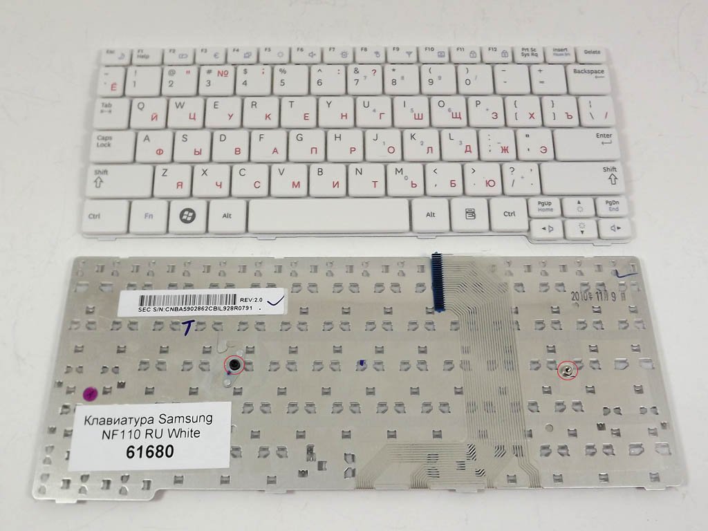 Клавіатура для ноутбука Samsung NF110, біла, російська розкладка (Оригінал)