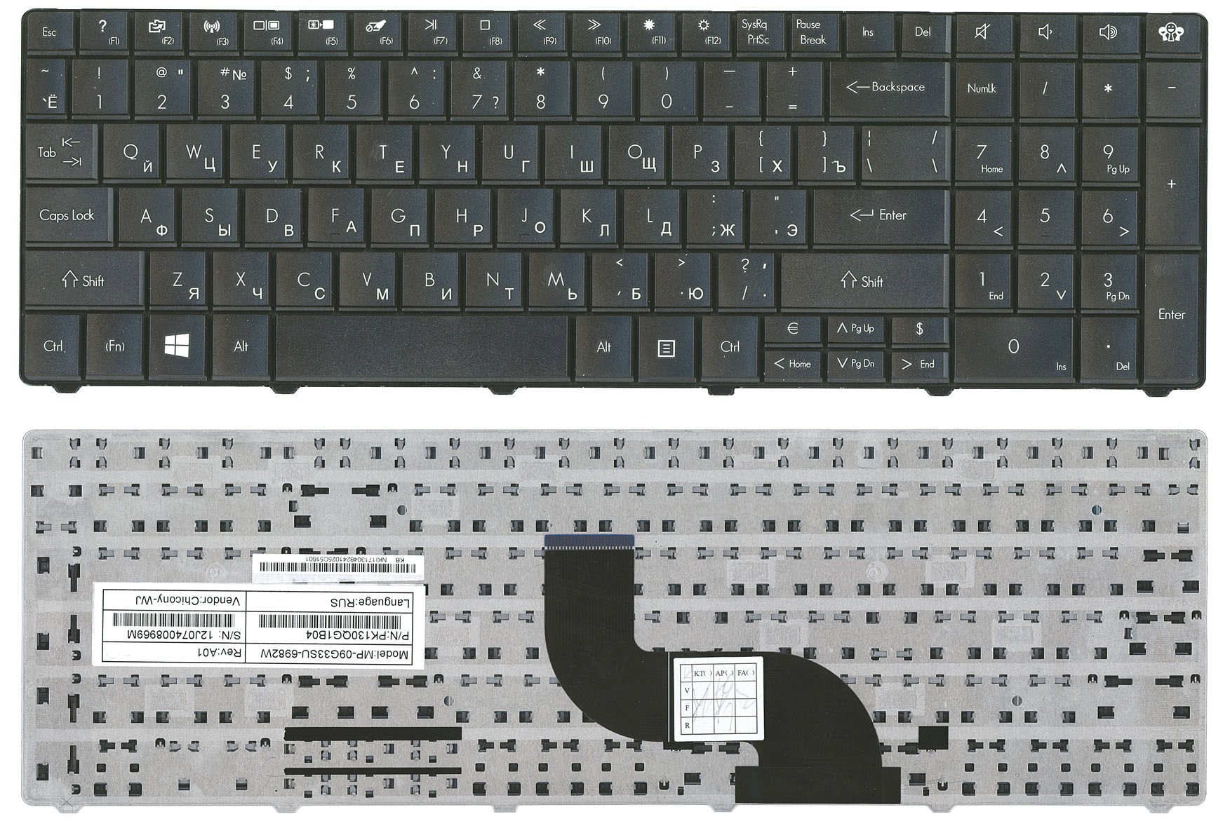 Клавіатура для ноутбуків Acer Gateway серії E1 (розкладка RU), чорна