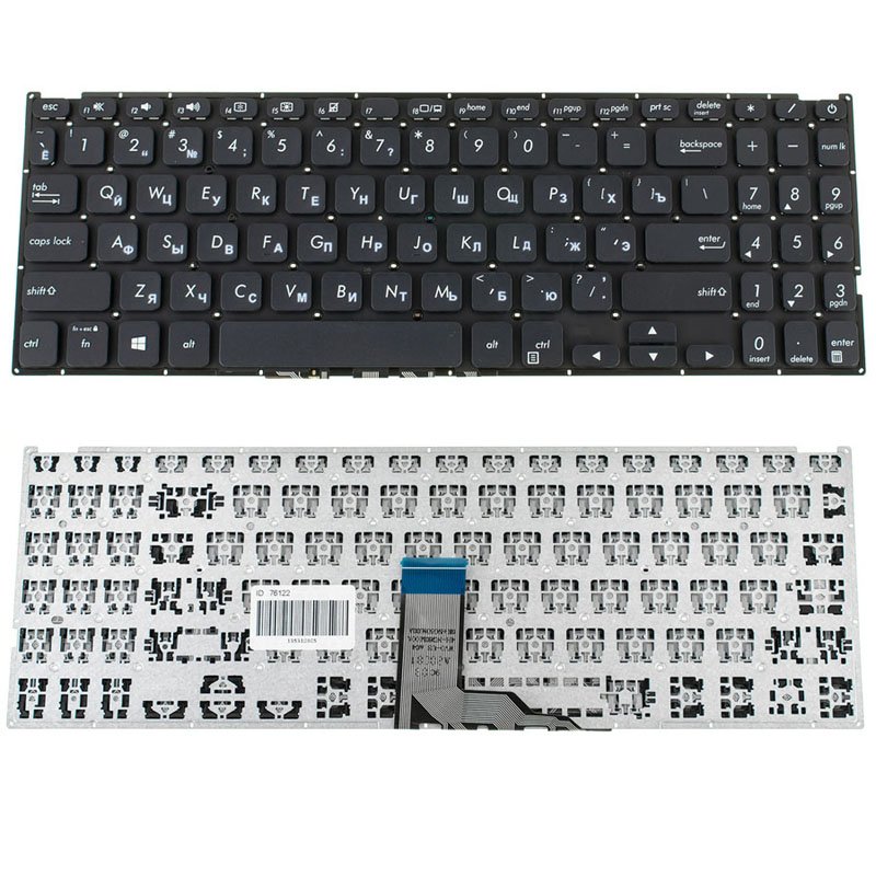 Клавіатура для ноутбуків ASUS X512 Series — розкладка RU/EN, чорна, без рамки