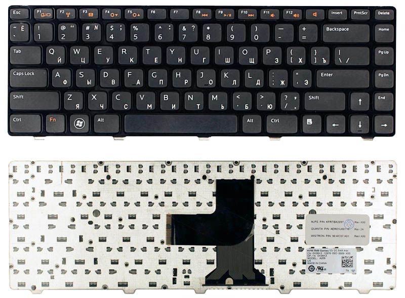 Клавіатура для ноутбуків Dell Vostro 1440/1450/1540/1550/3450/3550/V131, Inspiron 14R/7520/N4050/N4110/M5040/M5050/N5040/N5050 та XPS 15 (L501x, L502x) — чорна, з чорною рамкою, розкладка RU, Original