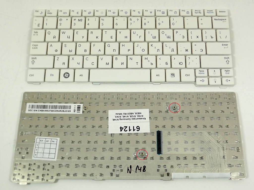 Клавіатура для ноутбуків Samsung серій N148, N150, N100, N128, N145, N143, NB30, NB20 (RU, біла). Надійна заміна для щоденного використання: забезпечує стабільний набір тексту та комфортну роботу. Перед замовленням рекомендуємо звірити сумісні моделі та партномери.