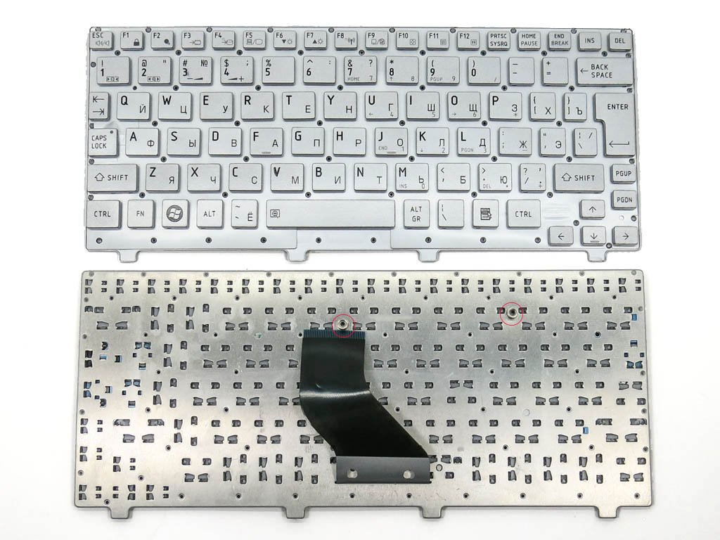 Клавіатура для ноутбуків Toshiba Satellite NB200, NB205, NB250, NB255, NB305 — RU розкладка, срібляста, без рамки